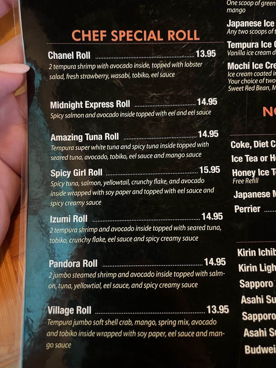 Yellow tail, cream cheese and avocado inside and the whole roll deep fried (Eel sauce on the top