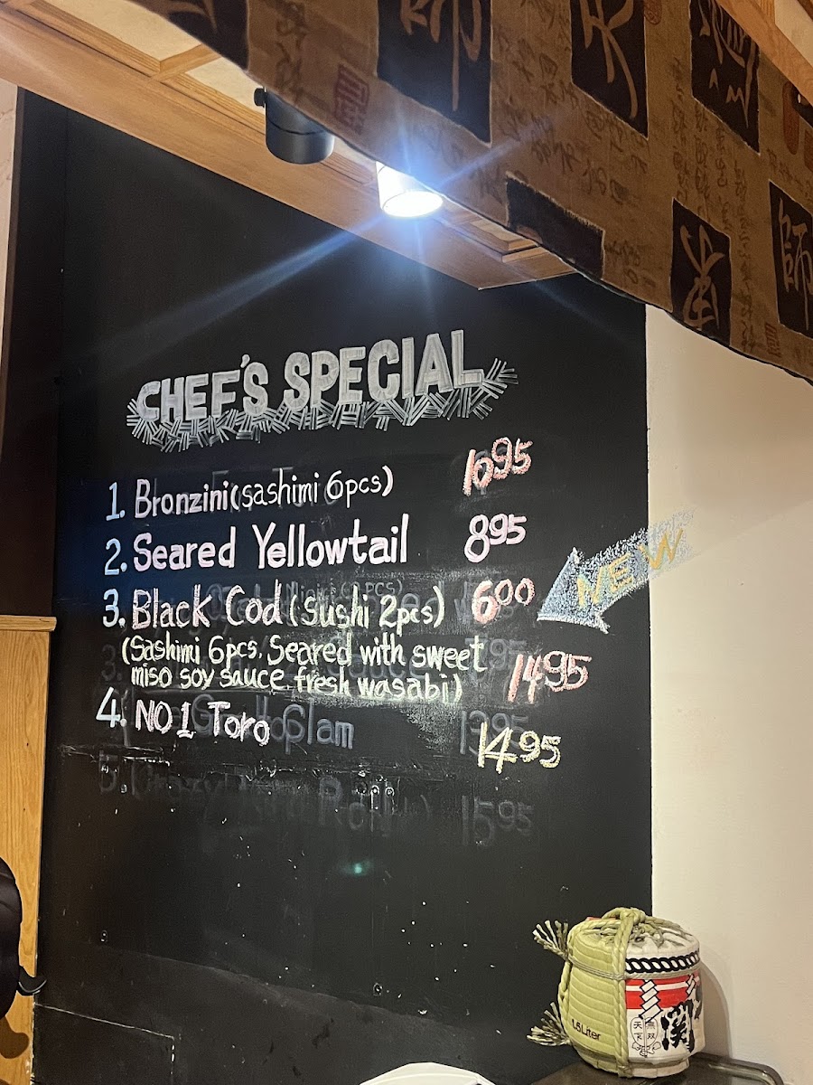 Of chef's daily inspiration sushi with spicy tuna roll.